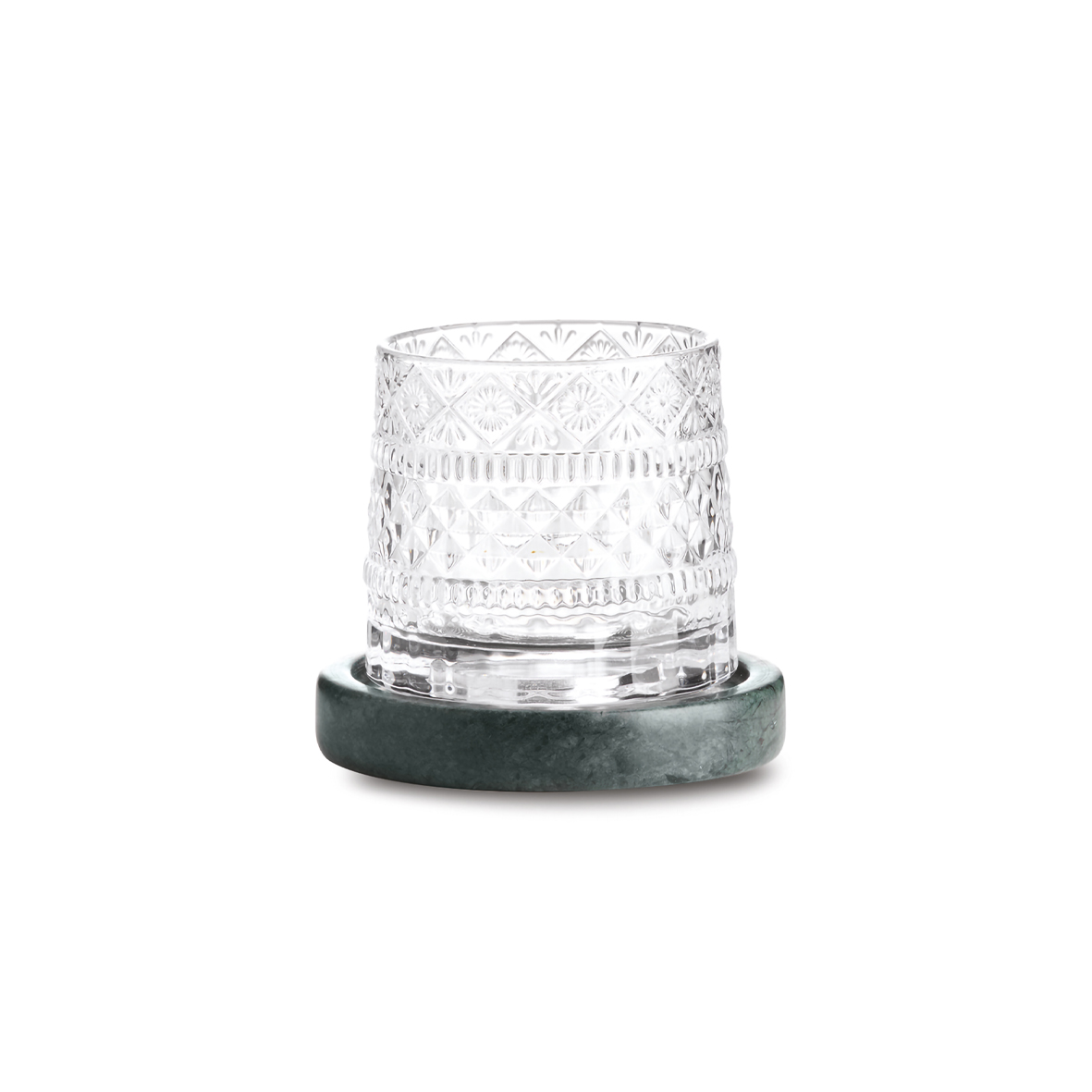 Glass w/dark green marble coaster in color box TRANSPARENT