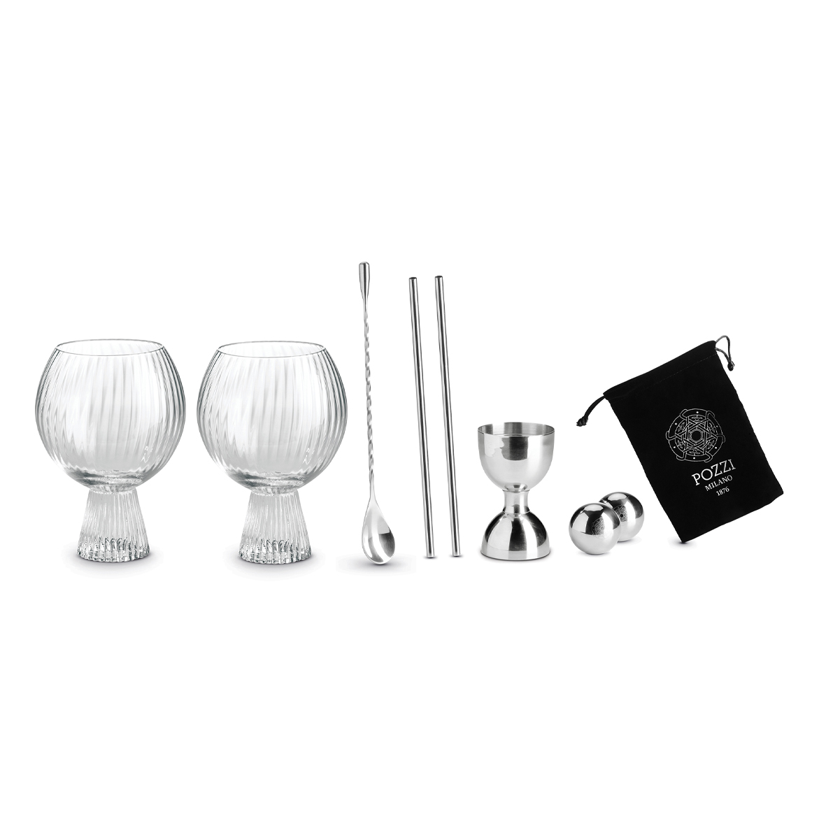 Set of 2 cocktail glasses gold rim in color box TRANSPARENT