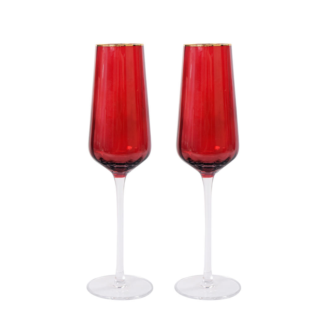 Set of 2 champagne glasses gold rim in color box TRANSPARENT
