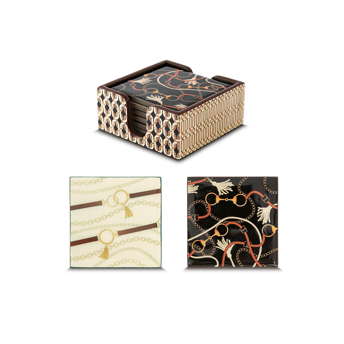 Set 6 MDF coasters 10,5×10,5×4,5 cm in c.b. LUXURY CHAIN