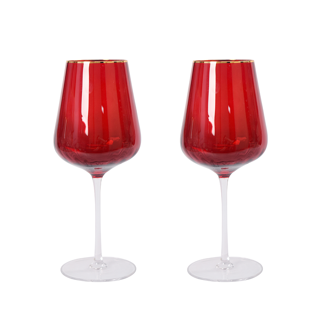 Set 2 bicchieri vino 500 ml in vetro bordo oro in color box ROSSO