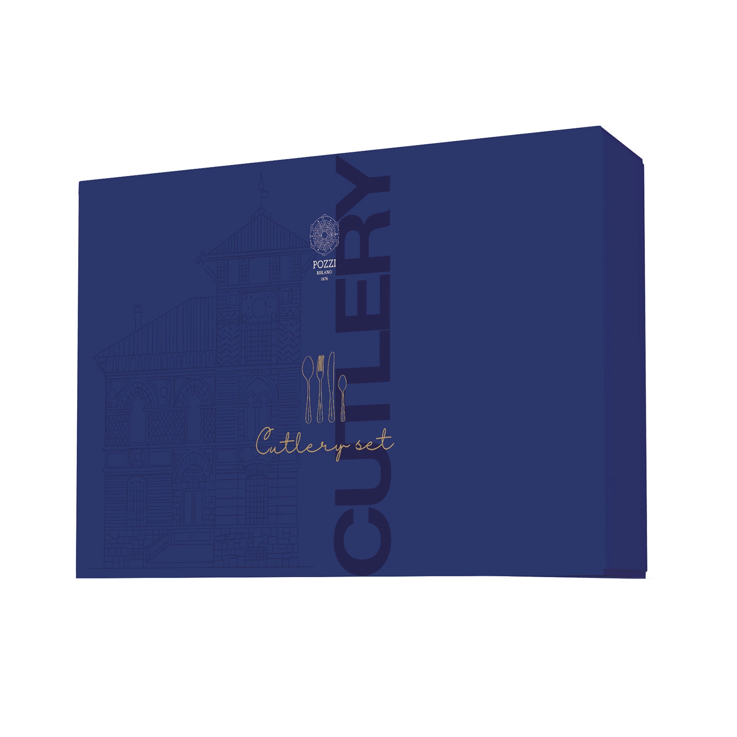 Il set di posate Champagne è composto da 24 pezzi, per un totale di 6 coperti completi di cucchiaio, forchetta, coltello e cucchiaino. Le posate Pozzi Milano 1876, vendute in un’elegante gift box e realizzate in acciaio inossidabile color champagne, danno un tocco di eleganza, modernità e ricercatezza alla tua mise en place, tanto nella vita quotidiana quanto nelle occasioni speciali.