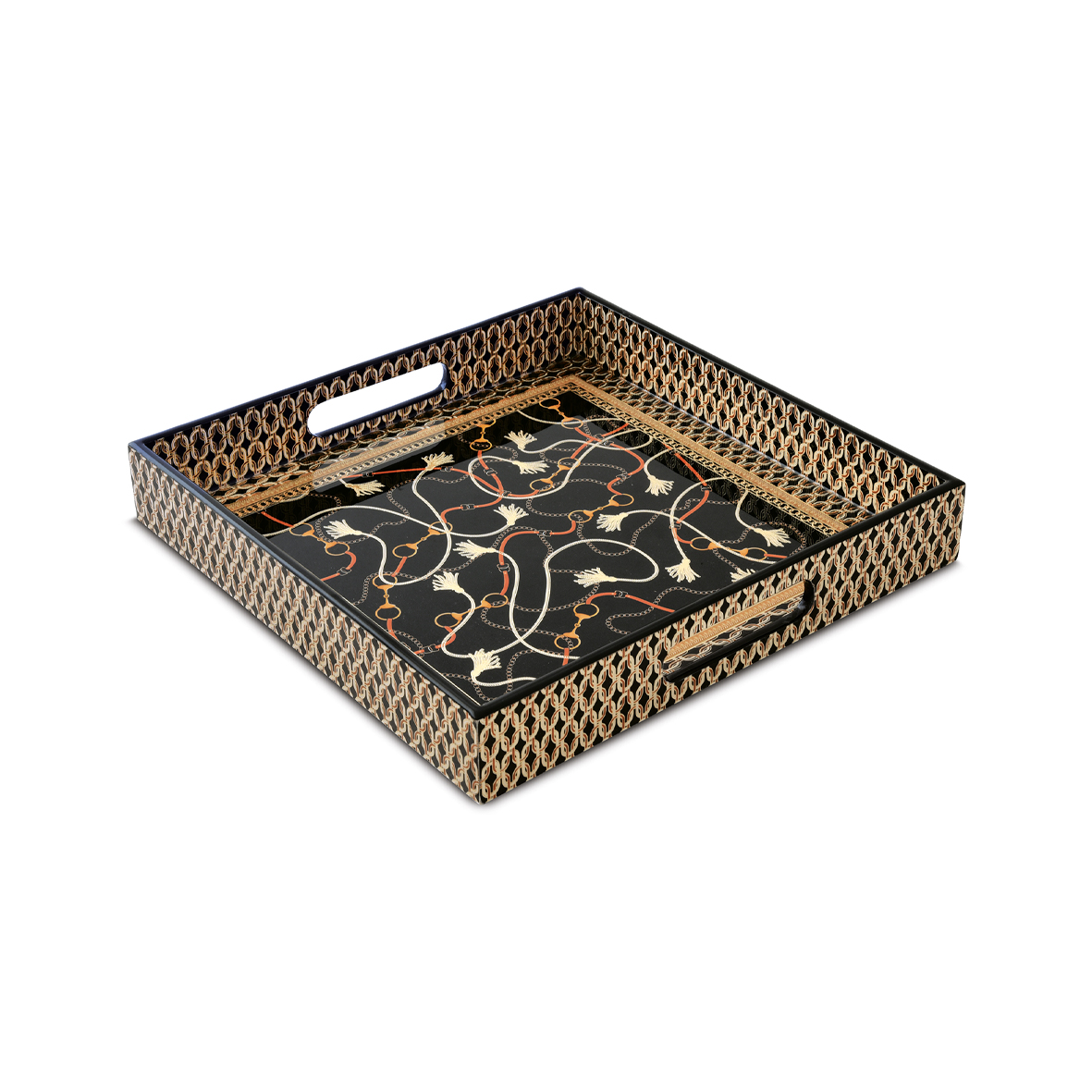 Vassoio quadrato 30x30x4,5 cm in MDF in c.b. LUXURY CHAIN BLACK
